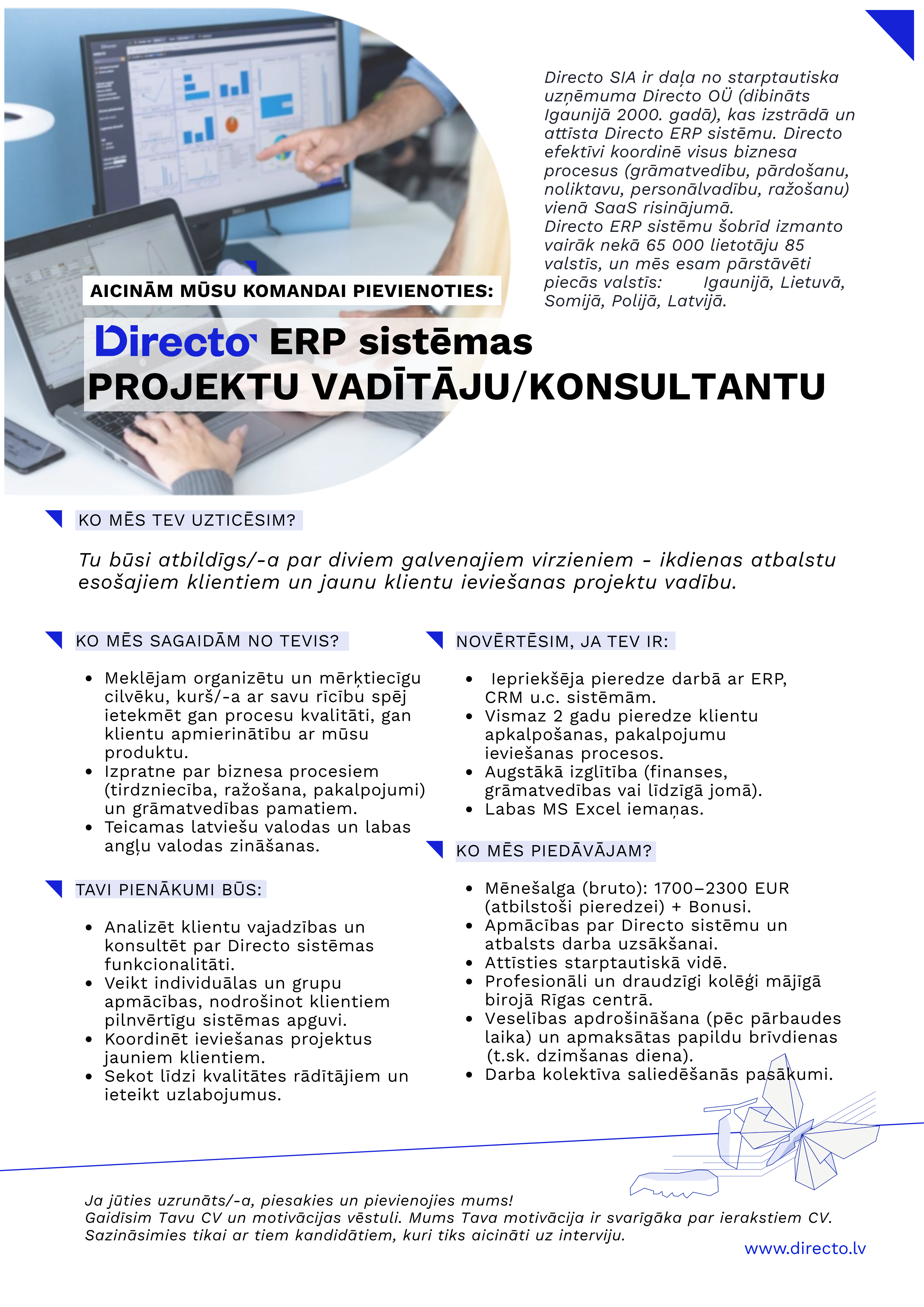 - Analizēt klientu vajadzības un konsultēt par Directo sistēmas funkcionalitāti.